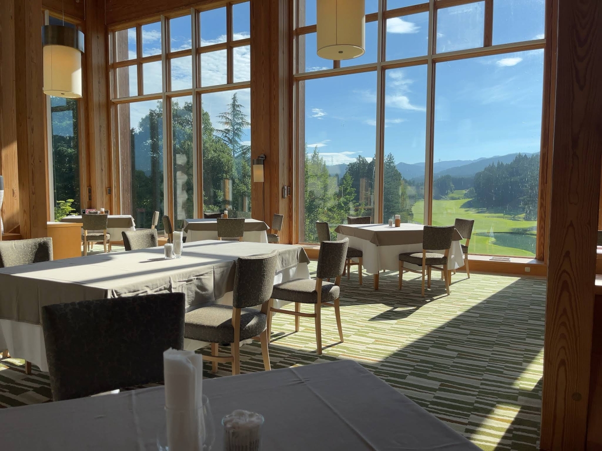 The award-winning clubhouse, Japan’s first large-scale wooden commercial building, was designed by renowned wooden structural architect Katsuo Nakata and honored with the Marronnier Architecture Award. Inside, Restaurant WOODS offers fresh, well-balanced lunches tailored for golfers, while Restaurant Siena, exclusively for hotel guests, serves breakfast and dinner with stunning views overlooking the 18th hole.